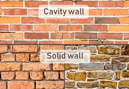 Shown are the different types of wall suitable for either cavity wall or internal wall insulation.
